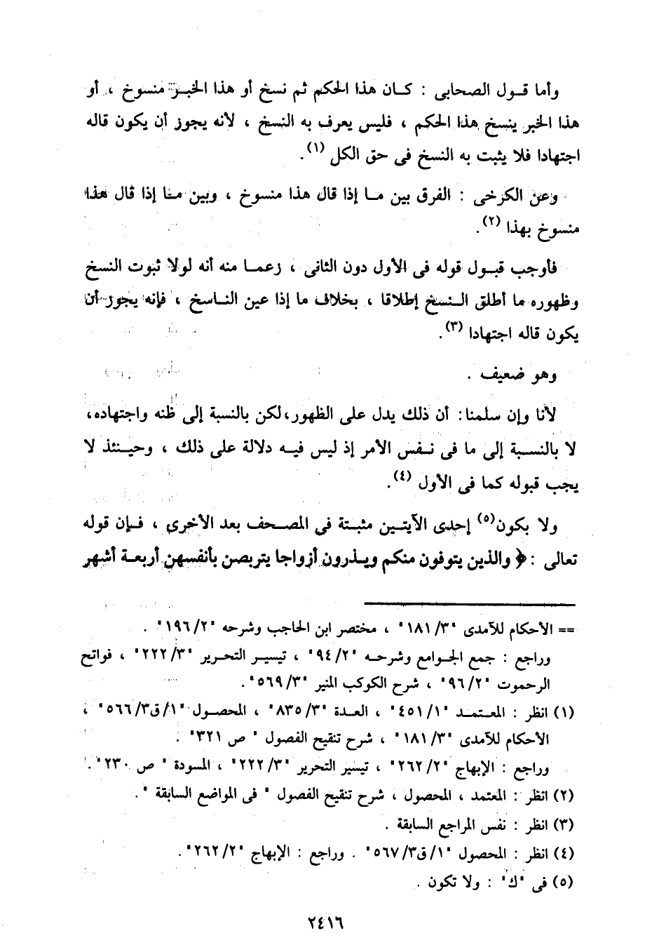 ولا بكون إحدى الآيتين مثبتة في المصحف بعد الأخرى، فإن قوله تعالى: {والذين يتوفون منكم ويذرون أزواجًا يتربصن بأنفسهن أربعة أشهر
