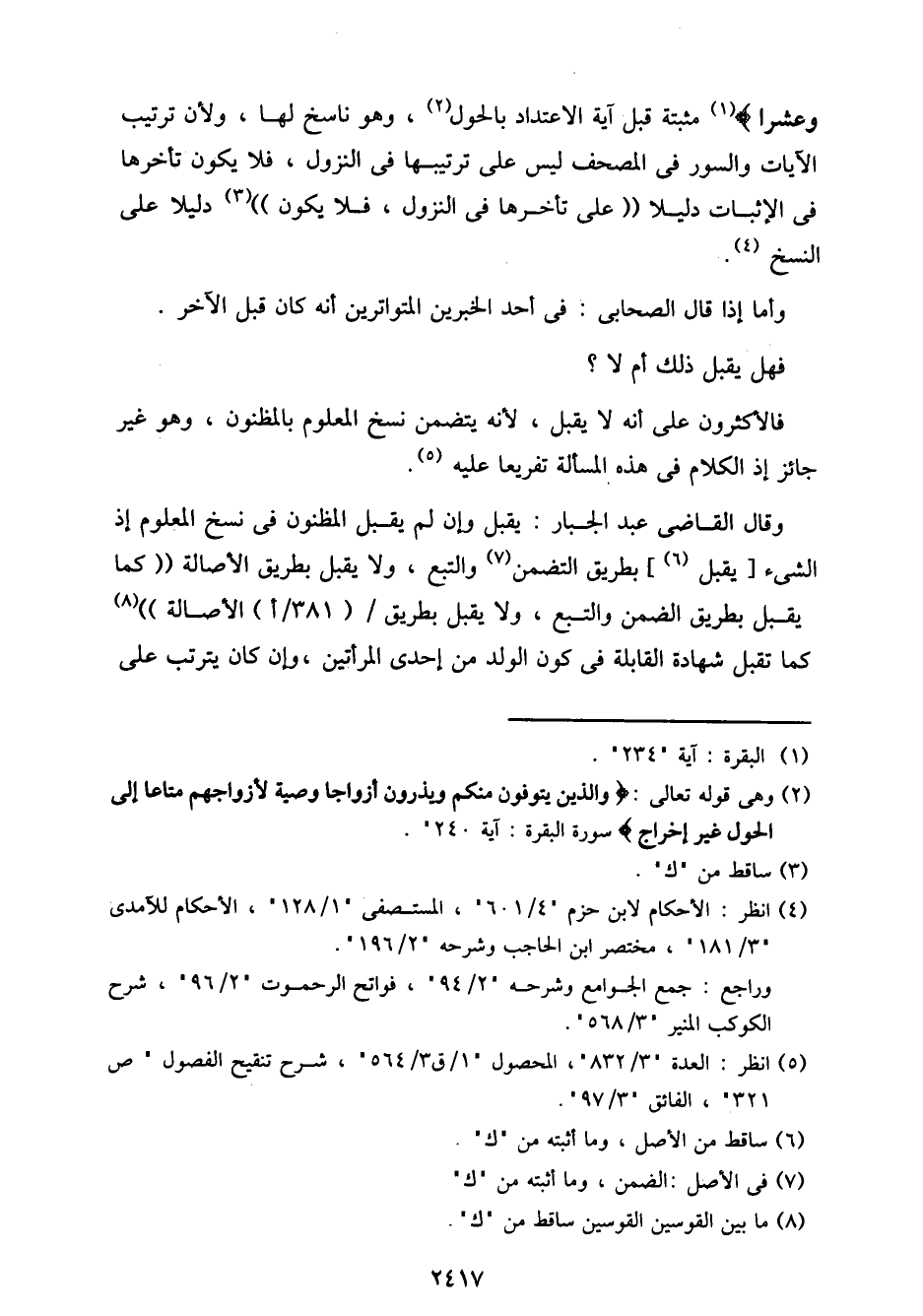 وعشرًا} مثبتة قبل آية الاعتداد بالحول، وهو ناسخ لها، ولأن ترتيب الآيات والسور في المصحف ليس على ترتيبها في النزول، فلا يكون تأخرها في الإثبات دليلاً "على تأخرها في النزول، فلا يكون" دليلاً على النسخ.