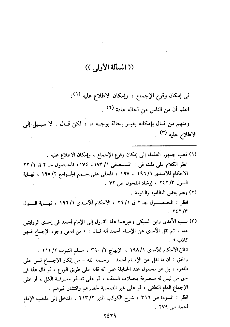 "المسألة الأولى"