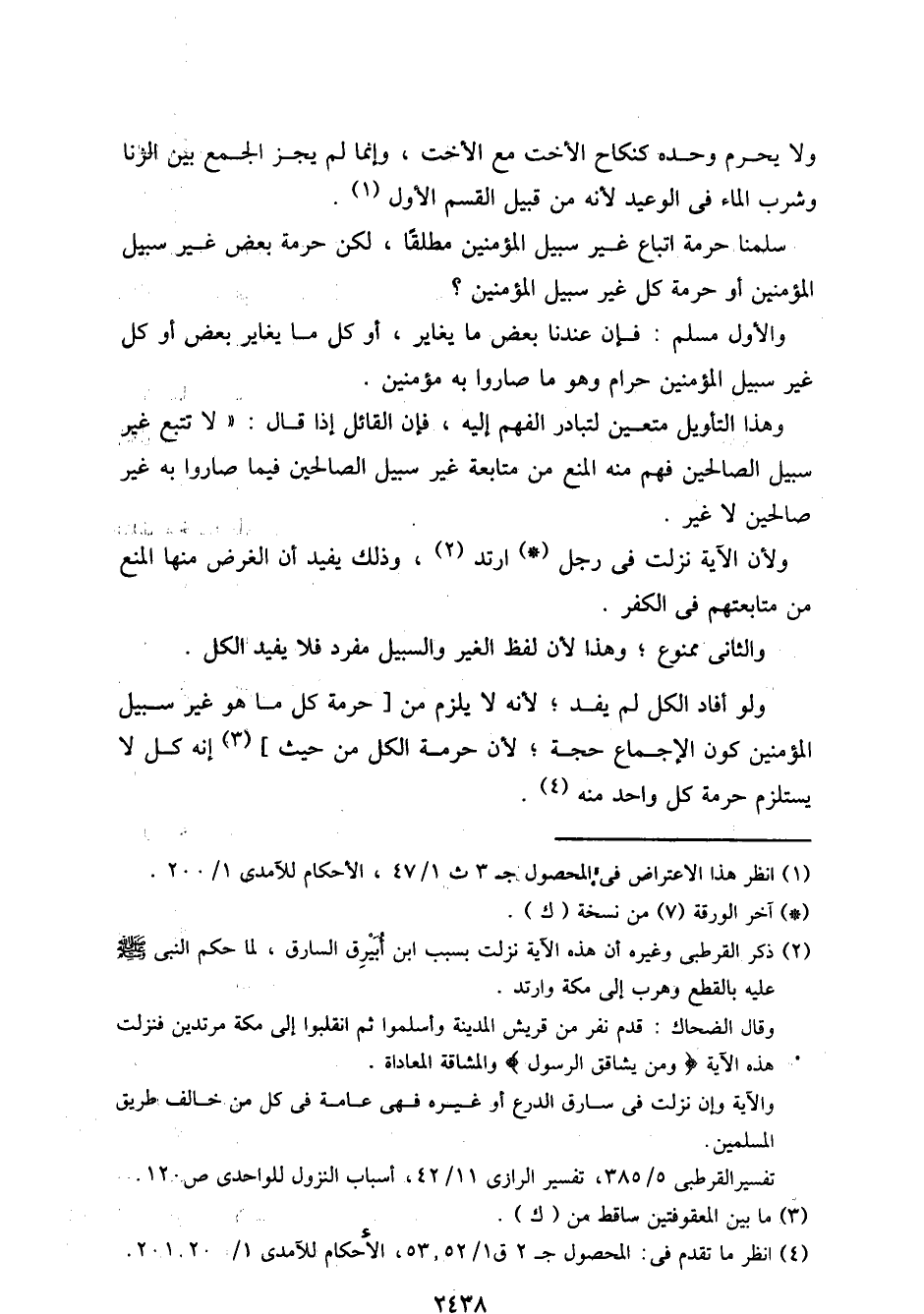 سلمنا حرمة اتباع غير سبيل المؤمنين مطلقًا، لكن حرمة بعض غير سبيل المؤمنين أو حرمة كل غير سبيل المؤمنين؟