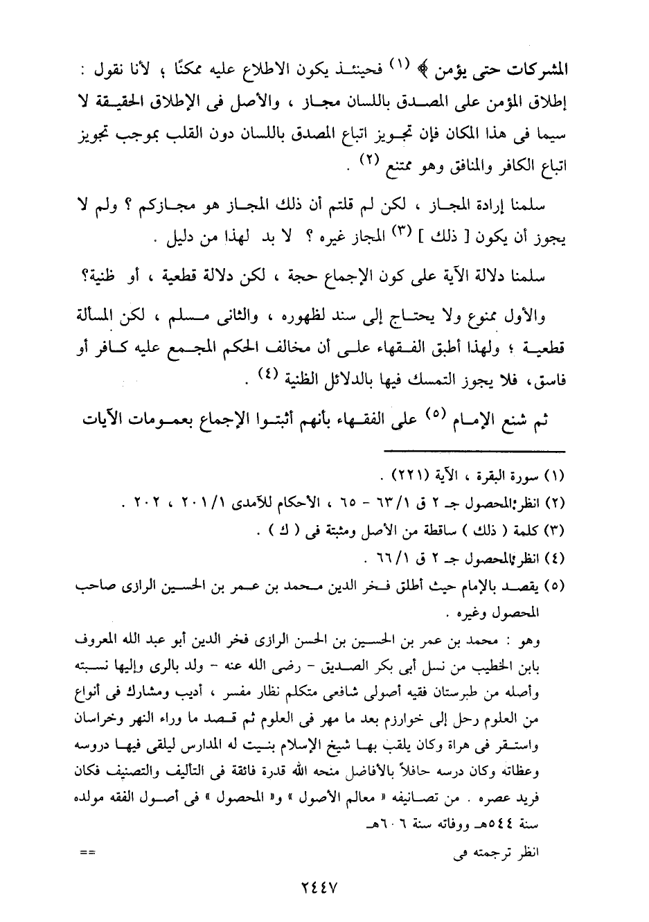 سلمنا إرادة المجاز، لكن لم قلتم أن ذلك المجاز هو مجازكم؟ ولم لا يجوز أن يكون [ذلك] المجاز غيره؟ لا بد لهذا من دليل.