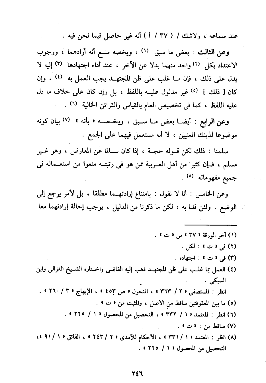 وعن الخامس: أنا لا نقول: بامتناع إرادتهما مطلقا، بل لأمر يرجع إلى الوضع. ولئن قلنا به، لكن ما ذكرنا من الدليل، يوجب إحالة إرادتهما معا