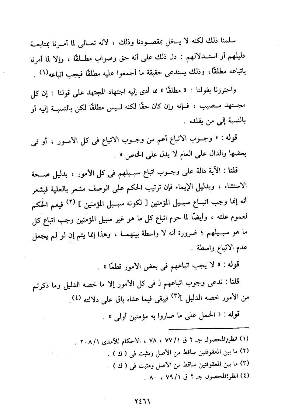 قلنا: الآية دالة على وجوب اتباع سبيلهم في كل الأمور، بدليل صحة الاستثناء، وبدليل الإيماء فإن ترتيب الحكم على الوصف مشعر بالعلية فيشعر أنه إنما وجب اتباع سبيل المؤمنين [لكونه سبيل المؤمنين] فيعم الحكم لعموم علته، وأيضًا لما حرم اتباع كل ما هو غير سبيل المؤمنين وجب اتباع كل ما هو سبيلهم؛ ضرورة أنه لا واسطة بينهما، وهذا إنما يتم إن لو لم يجعل عدم الاتباع واسطة.