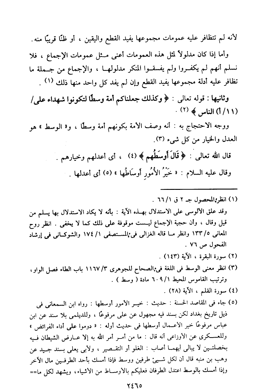 ووجه الاحتجاج به: أنه وصف الأمة بكونهم أمة وسطًا، و"الوسط" هو العدل والخيار من كل شيء.