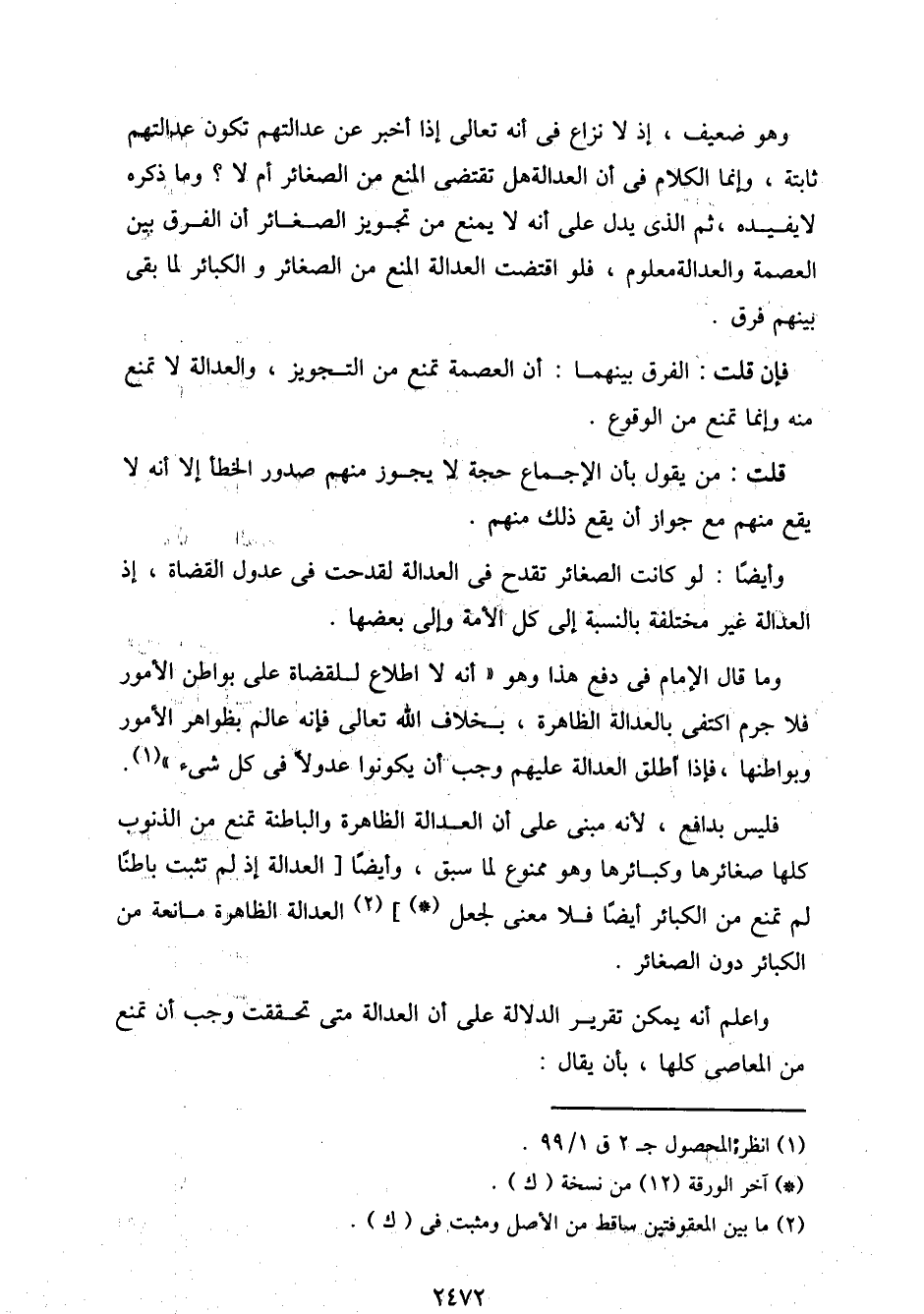 وأيضًا: لو كانت الصغائر تقدح في العدالة لقدحت في عدول القضاة، إذ العدالة غير مختلفة بالنسبة إلى كل الأمة وإلى بعضها.