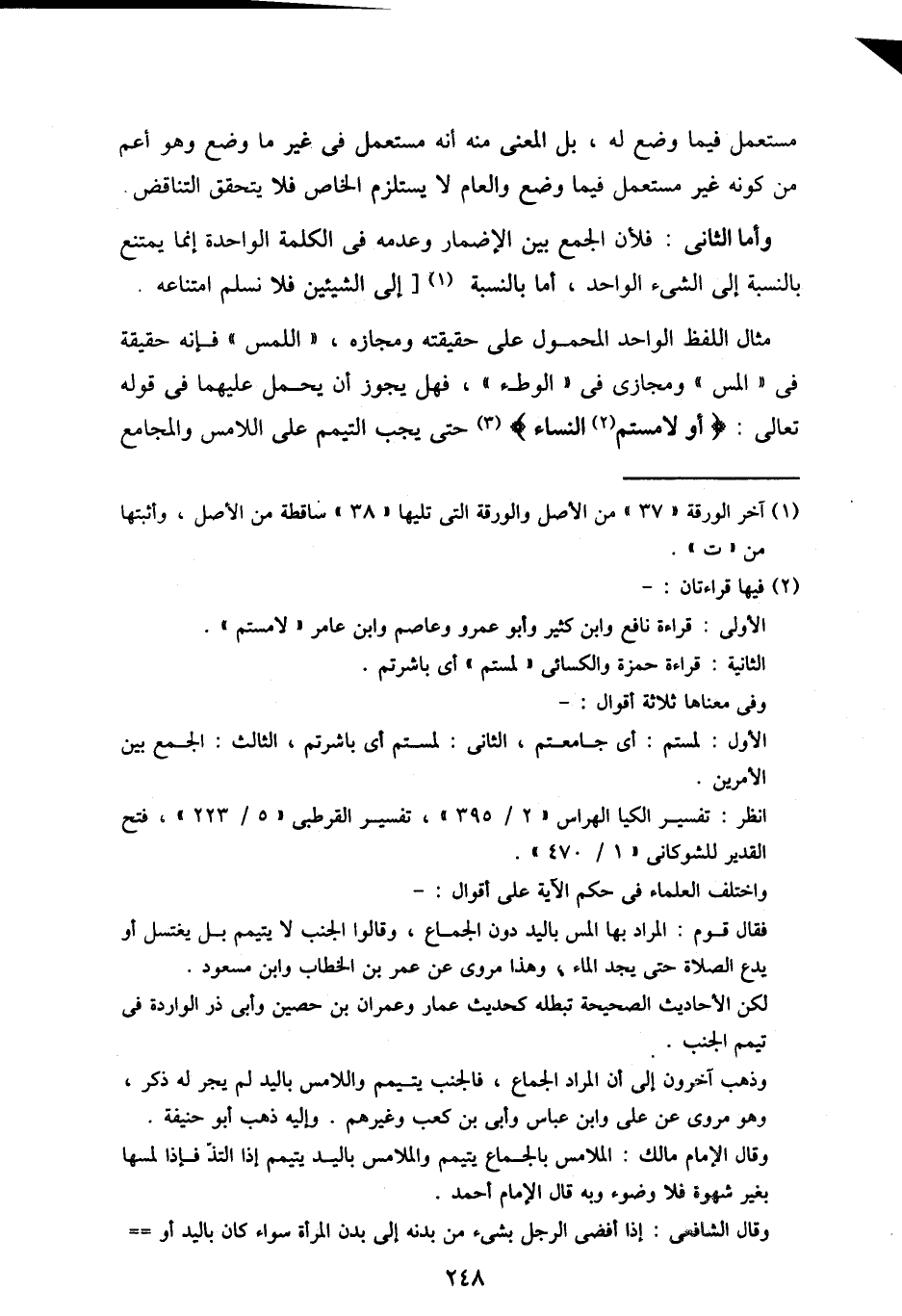 وأما الثاني: فلأن الجمع بين الإضمار وعدمه في الكلمة الواحدة إنما يمتنع بالنسبة إلى الشيء الواحد، أما بالنسبة [إلى الشيئين فلا نسلم امتناعه.