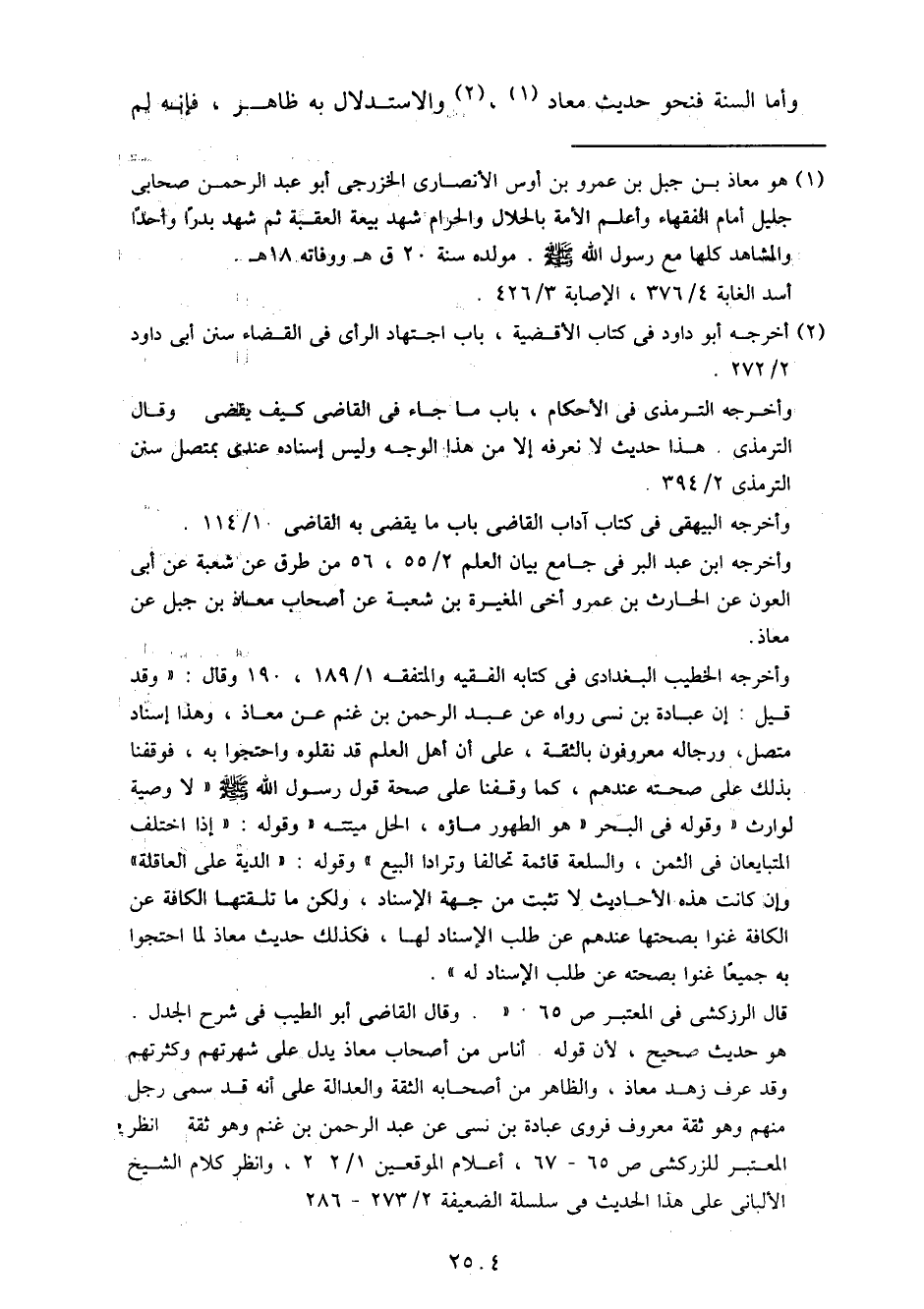 وأما السنة فنحو حديث معاد، والاستدلال به ظاهر، فإنه لم