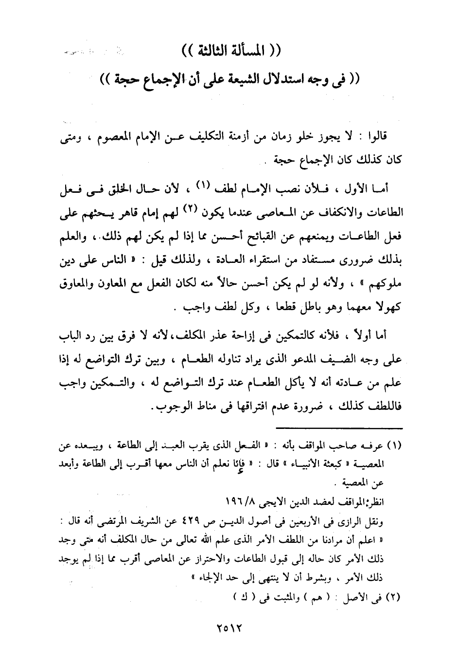 "في وجه استدلال الشيعة على أن الإجماع حجة"