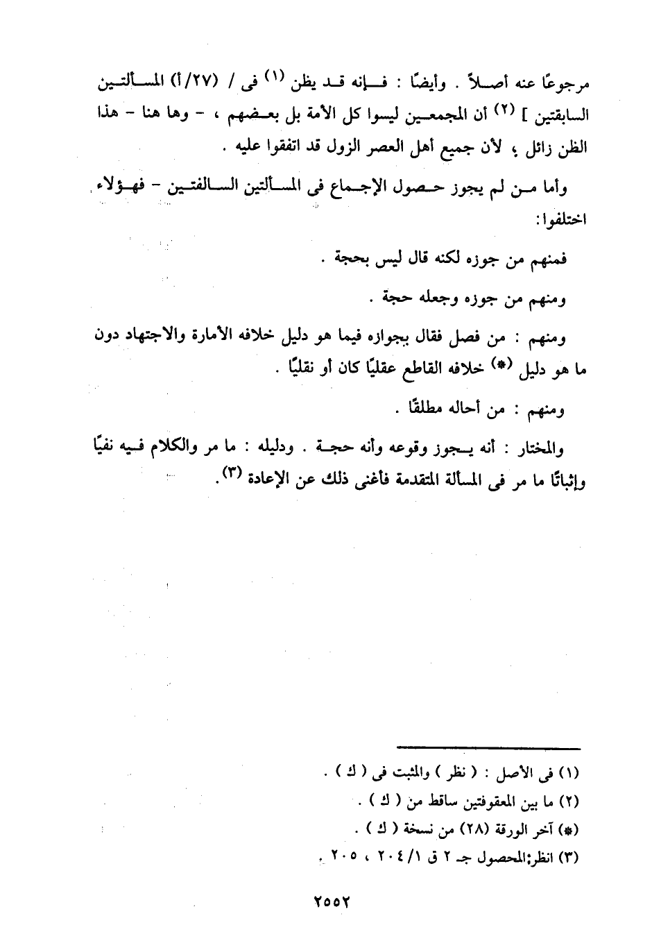 مرجوعًا عنه أصلاً. وأيضًا: فإنه قد يظن في/ (27/ أ) المسألتين السابقتين] أن المجمعين ليسوا كل الأمة بل بعضهم، - وها هنا - هذا الظن زائل؛ لأن جميع أهل العصر الزول قد اتفقوا عليه.