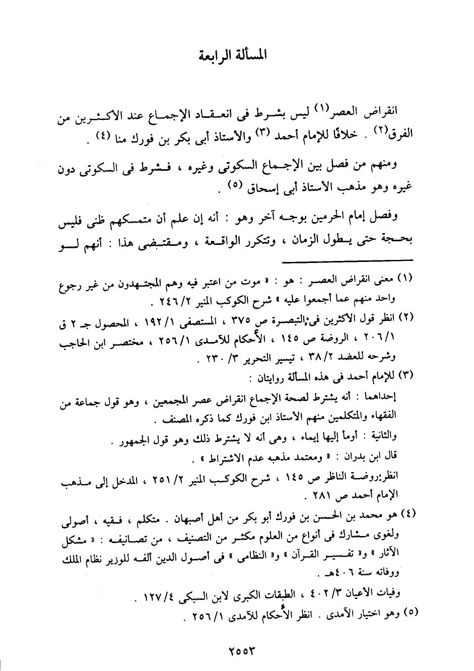 انقراض العصر ليس بشرط في انعقاد الإجماع عند الأكثرين من الفرق. خلافًا للإمام أحمد والأستاذ أبي بكر بن فورك منا.