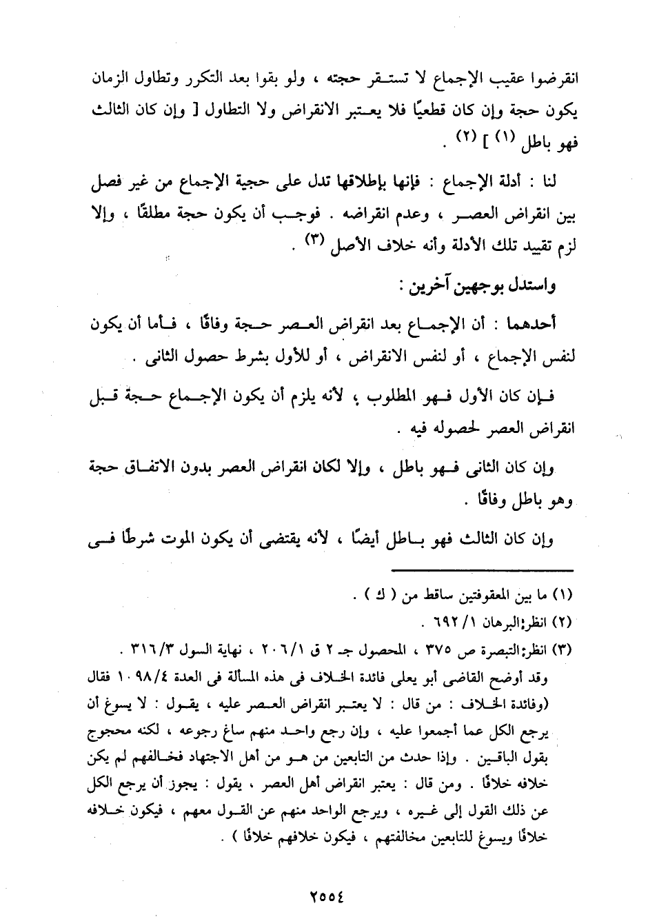 أحدهما: أن الإجماع بعد انقراض العصر حجة وفاقًا، فأما أن يكون لنفس الإجماع، أو لنفس الانقراض، أو للأول بشرط حصول الثاني.