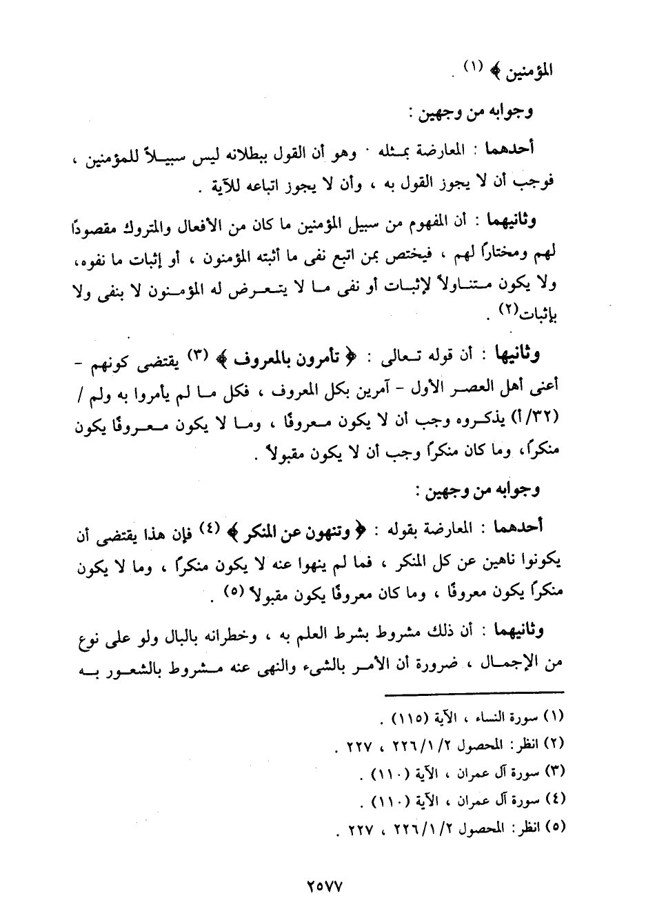 وثانيهما: أن المفهوم من سبيل المؤمنين ما كان من الأفعال والمتروك مقصودًا لهم ومختارًا لهم، فيختص بمن اتبع نفي ما أثبته المؤمنون، أو إثبات ما نفوه، ولا يكون متناولاً لإثبات أو نفي ما لا يتعرض له المؤمنون لا بنفي ولا بإثبات.
