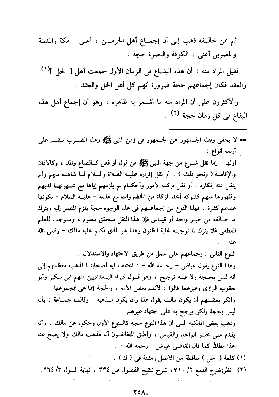 ثم ممن خالفه ذهب إلى أن إجماع أهل الحرمين، أعني مكة والمدينة