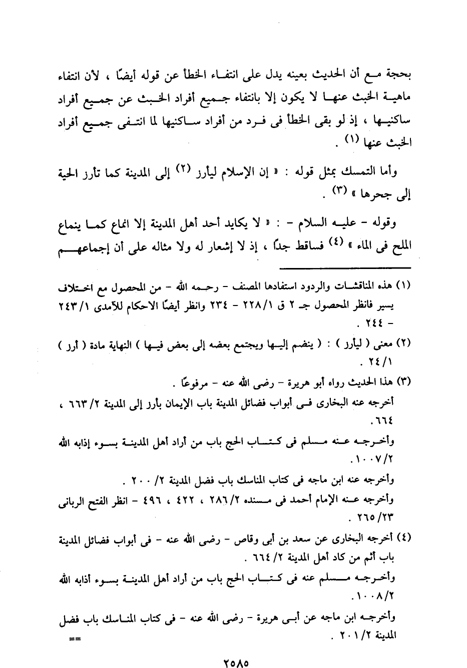 وأما التمسك بمثل قوله: "إن الإسلام ليأرز إلى المدينة كما تأرز الحية إلى حجرها".