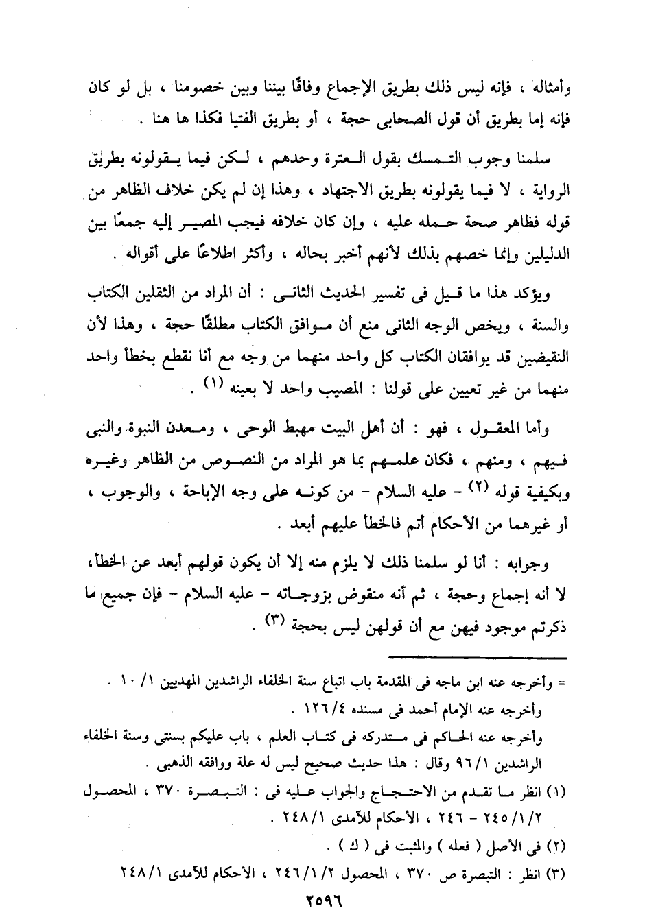ويؤكد هذا ما قيل في تفسير الحديث الثاني: أن المراد من الثقلين الكتاب والسنة، ويخص الوجه الثاني منع أن موافق الكتاب مطلقًا حجة، وهذا لأن النقيضين قد يوافقان الكتاب كل واحد منهما من وجه مع أنا نقطع بخطأ واحد منهما من غير تعيين على قولنا: المصيب واحد لا بعينه.