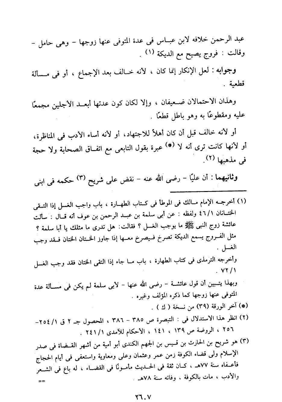 عبد الرحمن خلافه لابن عباس في عدة المتوفى عنها زوجها - وهي حامل - وقالت: فروج يصيح مع الديكة.