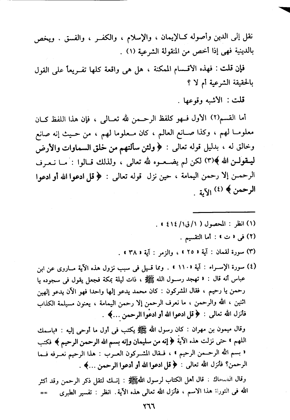 فإن قلت: فهذه الأقسام الممكنة، هل هي واقعة كلها تفريعا على القول بالحقيقة الشرعية أم لا؟