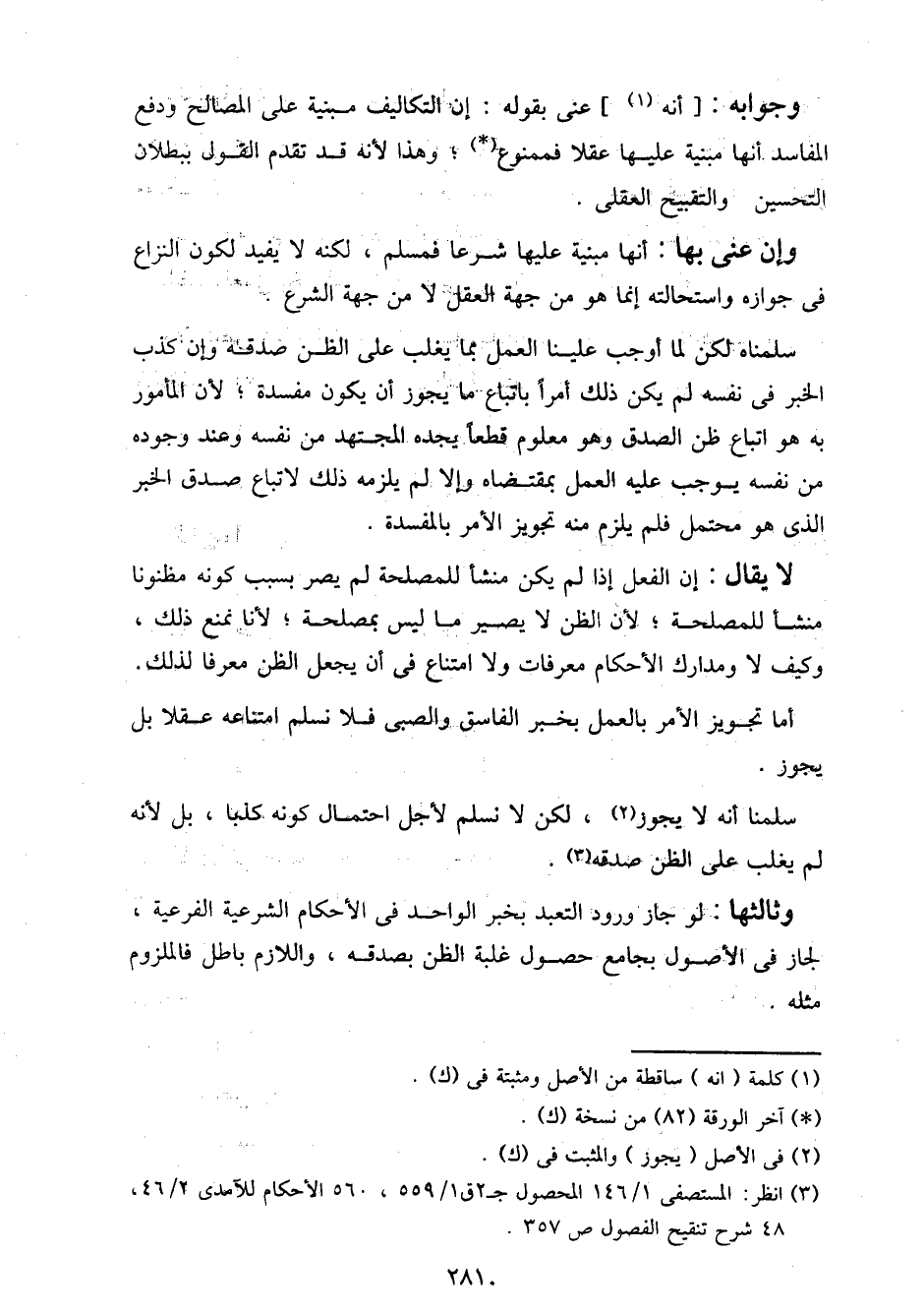 لا يقال: إن الفعل إذا لم يكن منشأ للمصلحة لم يصر بسبب كونه مظنونا منشأ للمصلحة؛ لأن الظن لا يصير ما ليس بمصلحة؛ لأنا نمنع ذلك، وكيف لا ومدارك الأحكام معرفات ولا امتناع في أن يجعل الظن معرفا لذلك.