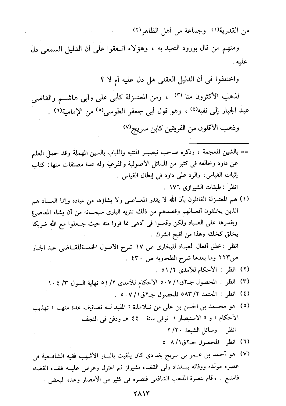 فذهب الأكثرون منا، ومن المعتزلة كأبي علي وأبي هاشم والقاضي عبد الجبار إلى نفيه، وهو قول أبي جعفر الطوسي من الإمامية.