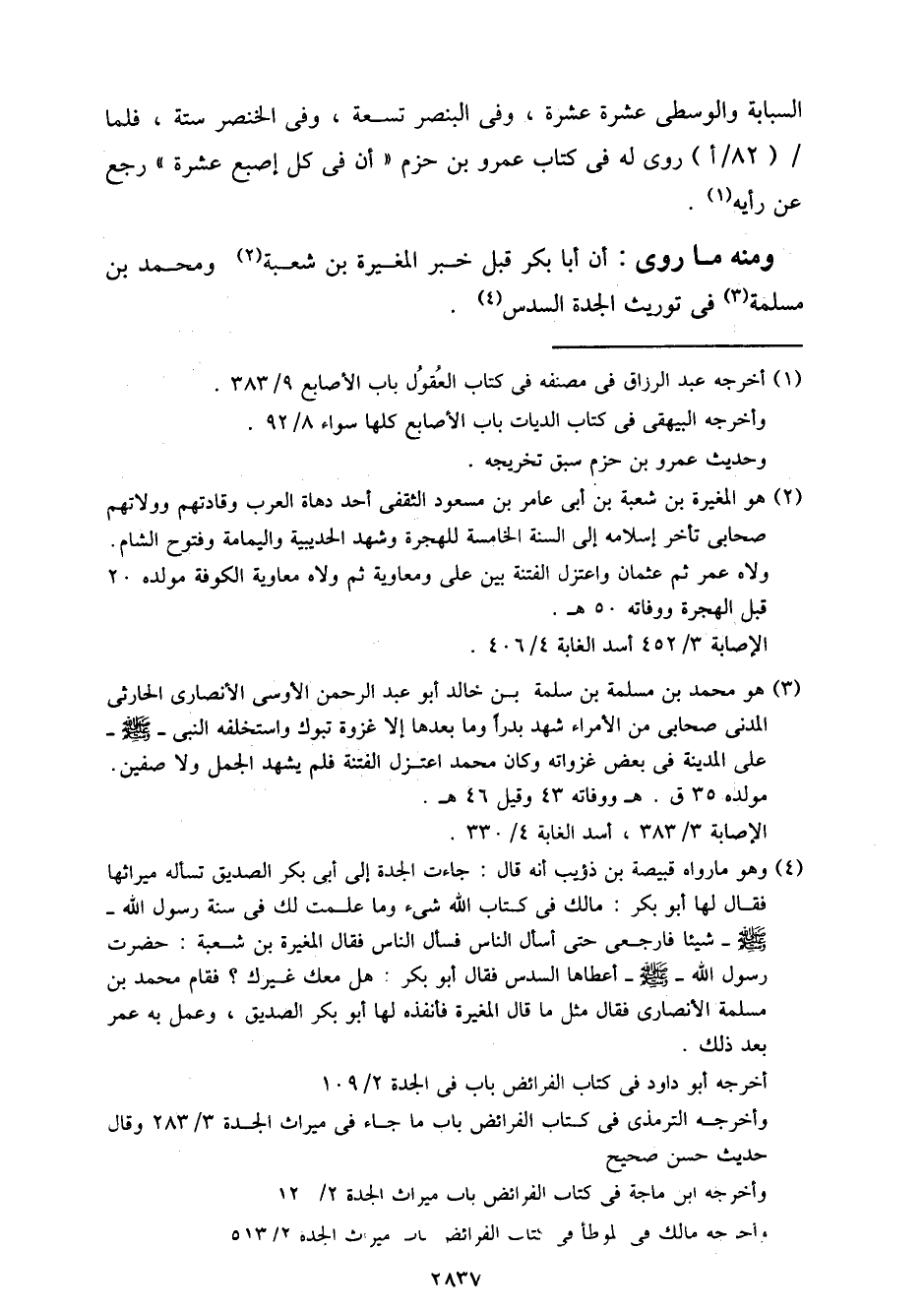 ومنه ما روي: أن أبا بكر قبل خبر المغيرة بن شعبة ومحمد بن مسلمة في توريث الجدة السدس.