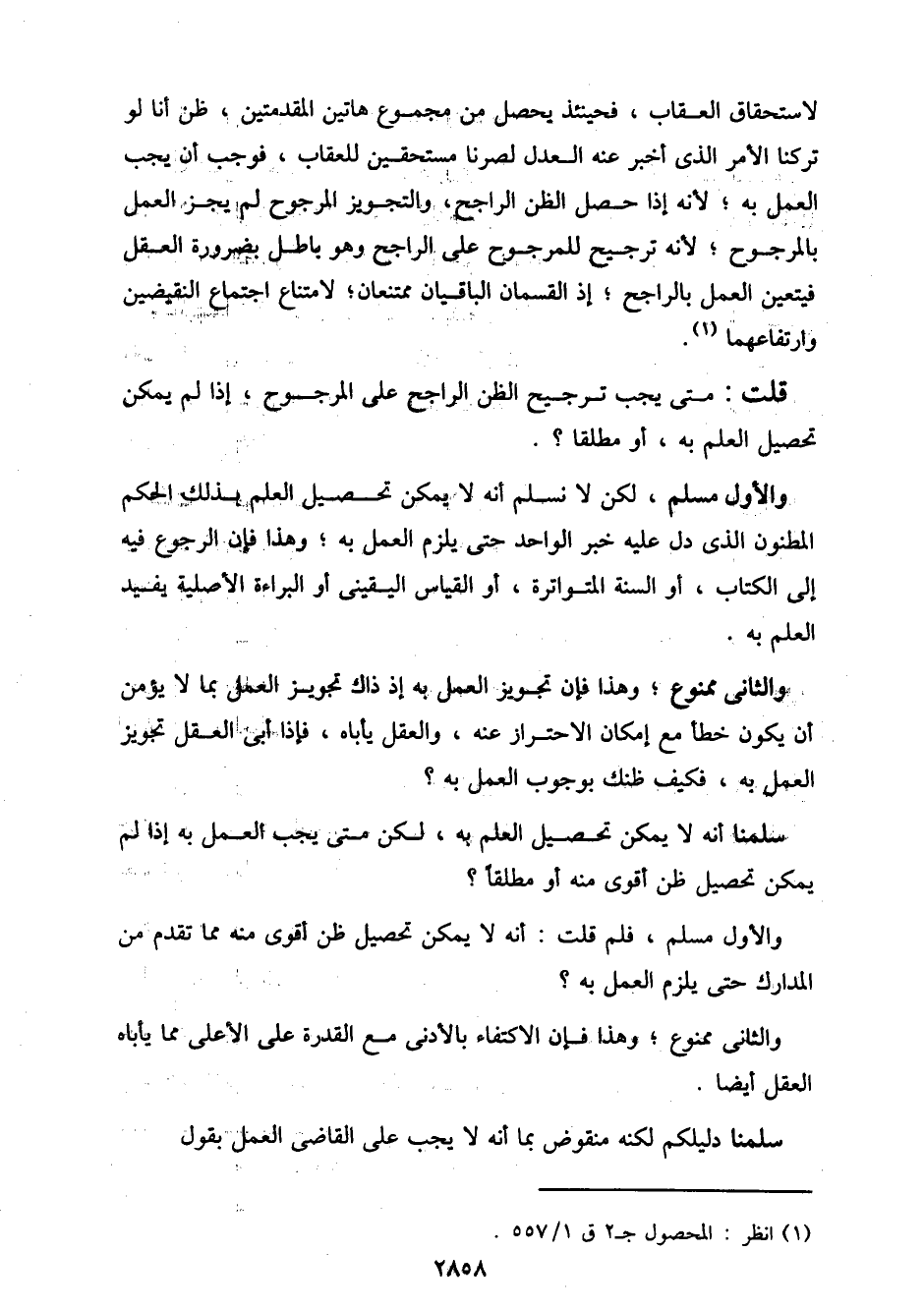 قلت: متى يجب ترجيح الظن الراجح على المرجوح، إذا لم يمكن تحصيل العلم به، أو مطلقا؟