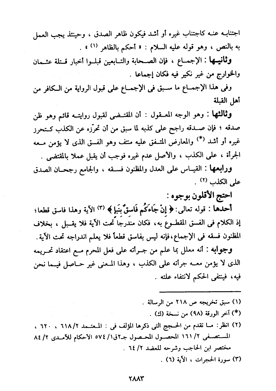 وثانيها: الإجماع، فإن الصحابة والتابعين قبلوا أخبار قتلة عثمان والخوارج من غير نكير فيه فكان إجماعا.
