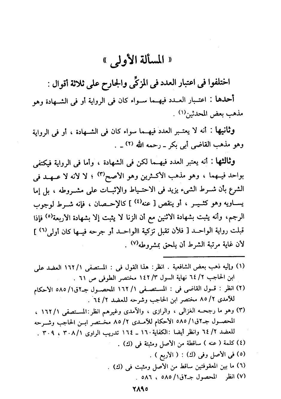 وثانيها: أنه لا يعتبر العدد فيهما سواء كان في الشهادة، أو في الرواية وهو مذهب القاضي أبي بكر - رحمه الله -.