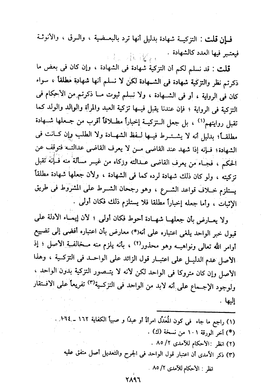ولا يعارض بأن جعلها شهادة أحوط فكان أولى؛ لأن إيماء الأدلة على قبول خبر الواحد يلغي اعتباره على أنه معارض بأن اعتباره أفضى إلى تضييع أوامر الله تعالى ونواهيه وهو محذور، بأنه يلزم منه مخالفة الأصل؛ إذ الأصل عدم الدليل على اعتبار قول الزائد على الواحد في التزكية، وهذا الأصل وإن كان متروكا في الواحد لكن لأنه لا يتصور التزكية بدون الواحد، ولوجود الإجماع على أنه لا بد من الواحد في التزكية تفريعا على الافتقار إليها.