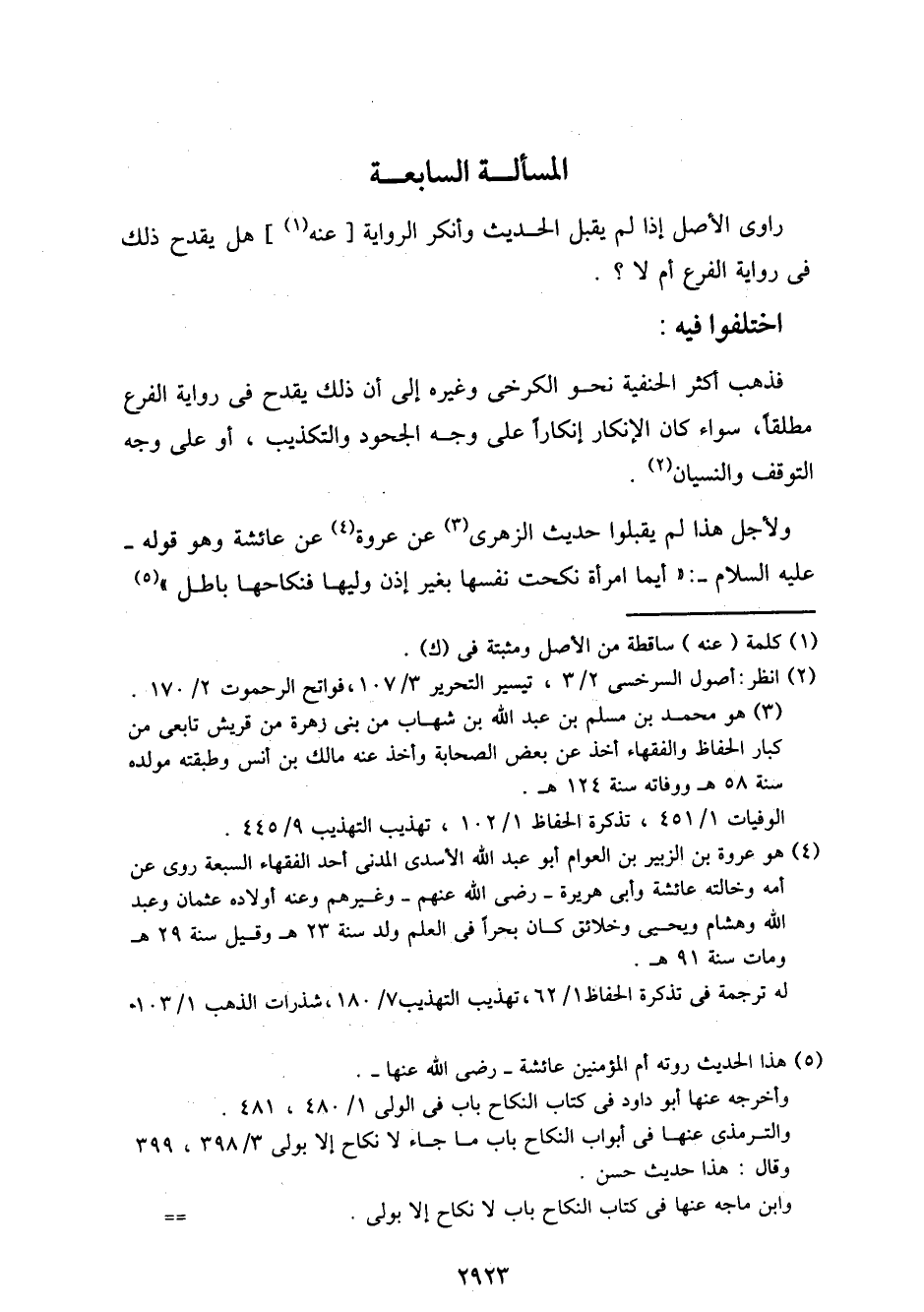 ولأجل هذا لم يقبلوا حديث الزهري عن عروة عن عائشة وهو قوله - عليه السلام -: "أيما امرأة نكحت نفسه بغير إذن وليها فنكاحها باطل".