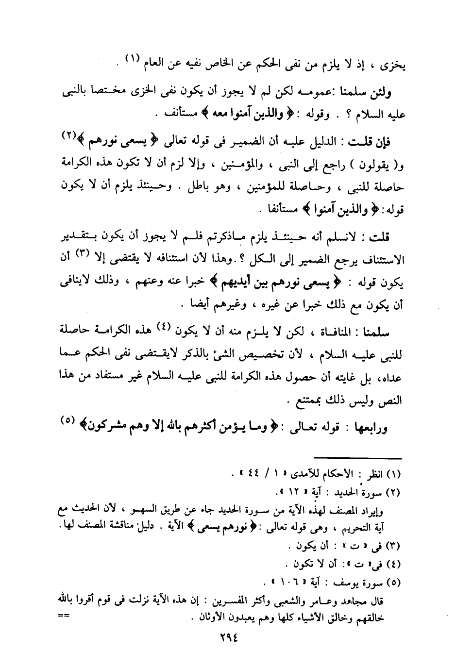 فإن قلت: الدليل عليه أن الضمير في قوله تعالى {يسعى نورهم} و (يقولون) راجع إلى النبي، والمؤمنين، وإلا لزم أن لا تكون هذه الكرامة حاصلة للنبي، وحاصلة للمؤمنين، وهو باطل. وحينئذ يلزم أن لا يكون قوله: {والذين آمنوا} مستأنفا.