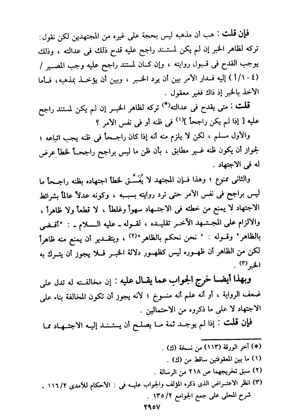 قلت: متى يقدح في عدالته تركه لظاهر الخبر إن لم يكن لمستند راجح عليه [إذا لم يكن راجحا] في ظنه أو في نفس الأمر؟