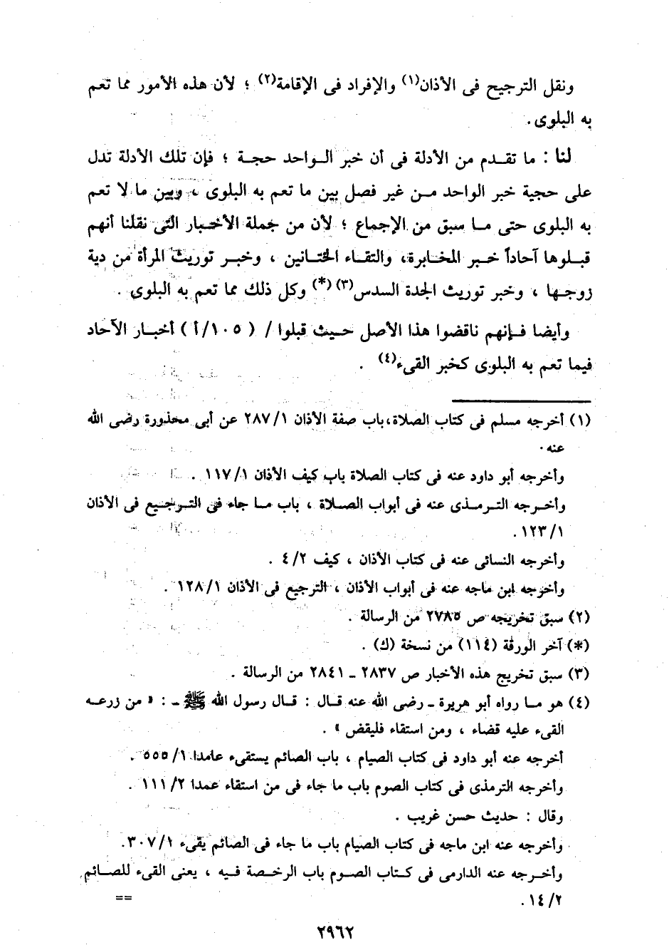 ونقل الترجيح في الأذان والإفراد في الإقامة؛ لأن هذه الأمور مما تعم به البلوى.