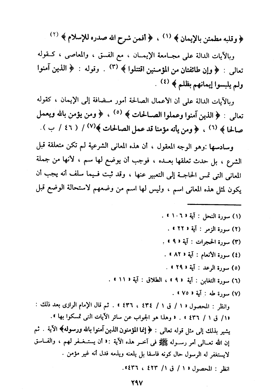 وبالآيات الدالة على أن الأعمال الصالحة أمور مضافة إلى الإيمان، كقوله تعالى: {الذين آمنوا وعملوا الصالحات}، {ومن يؤمن بالله ويعمل صالحا}، "ومن يأته مؤمنا قد عمل الصالحات} / (46/ب).