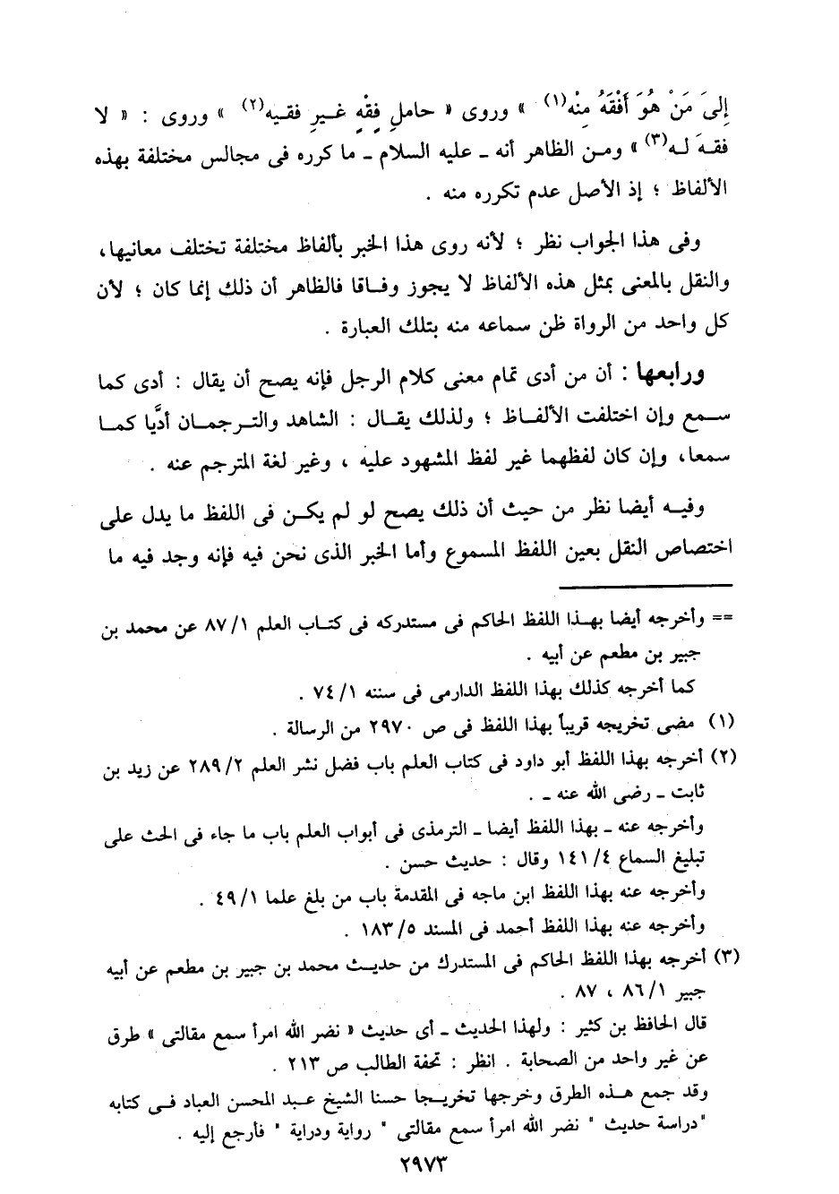 ورابعها: أن من أدى تمام معنى كلام ال رجل فإنه يصح أن يقال: أدى كما سمع وإن اختلفت الألفاظ؛ ولذلك يقال: الشاهد والترجمان أديا كما سمعا، وإن كان لفظهما غير لفظ المشهود عليه، وغير لغة المترجم عنه.