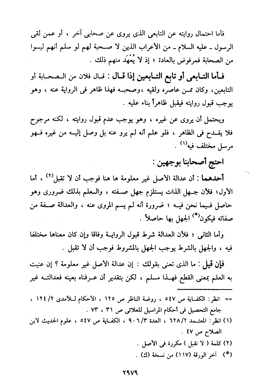 فأما احتمال روايته عن التابعي الذي يروي عن صحابي آخر، أو عمن لقي الرسول - عليه السلام - من الأعراب الذين لا صحبة لهم لو سلم أنهم ليسوا من الصحابة فمرفوض بالعادة؛ إذ لا يعهد منهم ذلك.