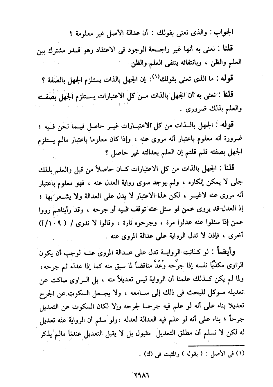 الجواب: والذي تعني بقولك: أن عدالة الأصل غير معلومة؟