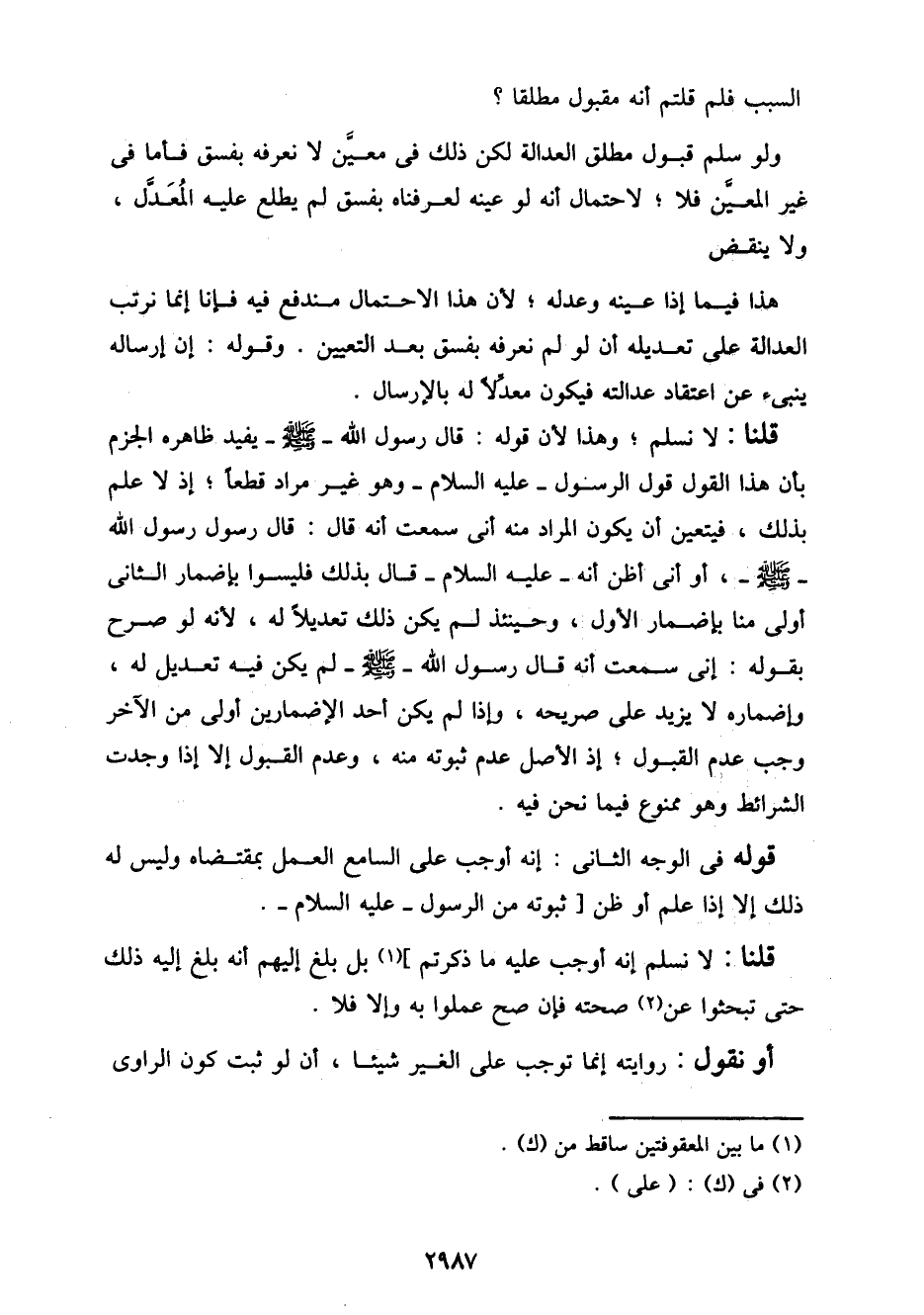 قوله في الوجه الثاني: إنه أوجب على السامع العمل بمقتضاه وليس له ذلك إلا إذا علم أو ظن [ثبوته من الرسول - عليه السلام -.