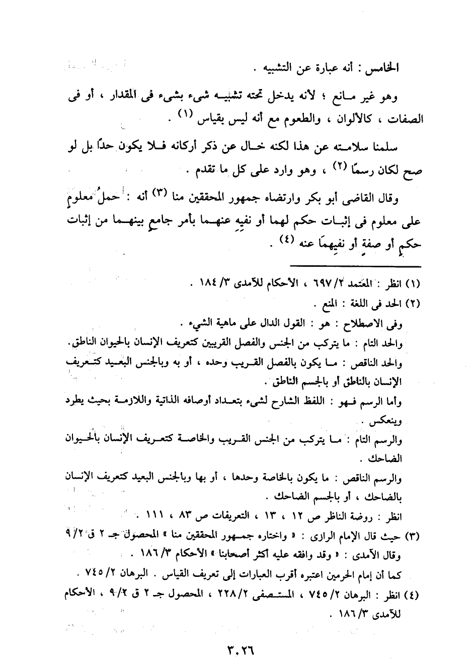 سلمنا سلامته عن هذا لكنه خال عن ذكر أركانه فلا يكون حدًا بل لو صح لكان رسمًا، وهو وارد على كل ما تقدم.