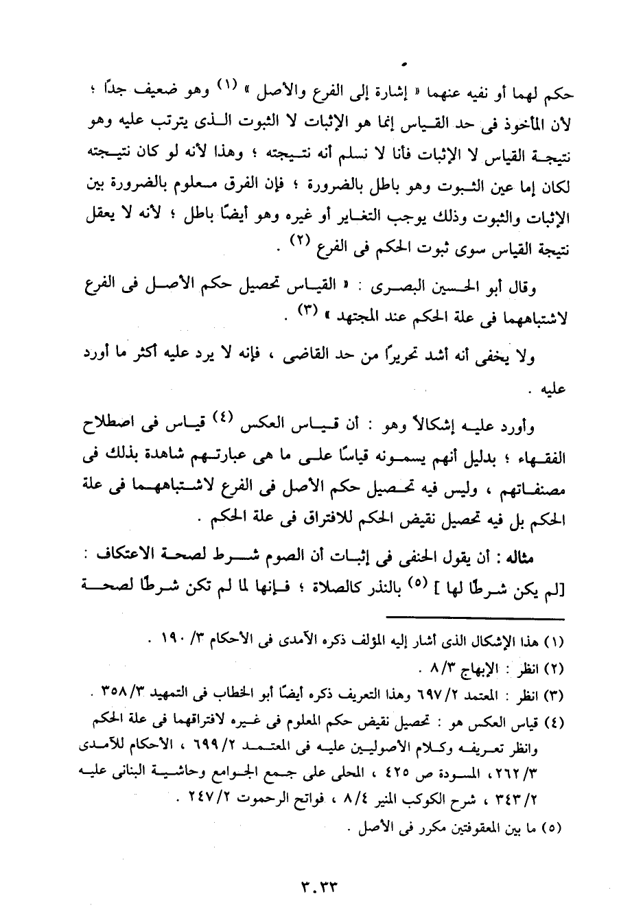 وقال أبو الحسين البصري: "القياس تحصيل حكم الأصل في الفرع لاشتباههما في علة الحكم عند المجتهد".