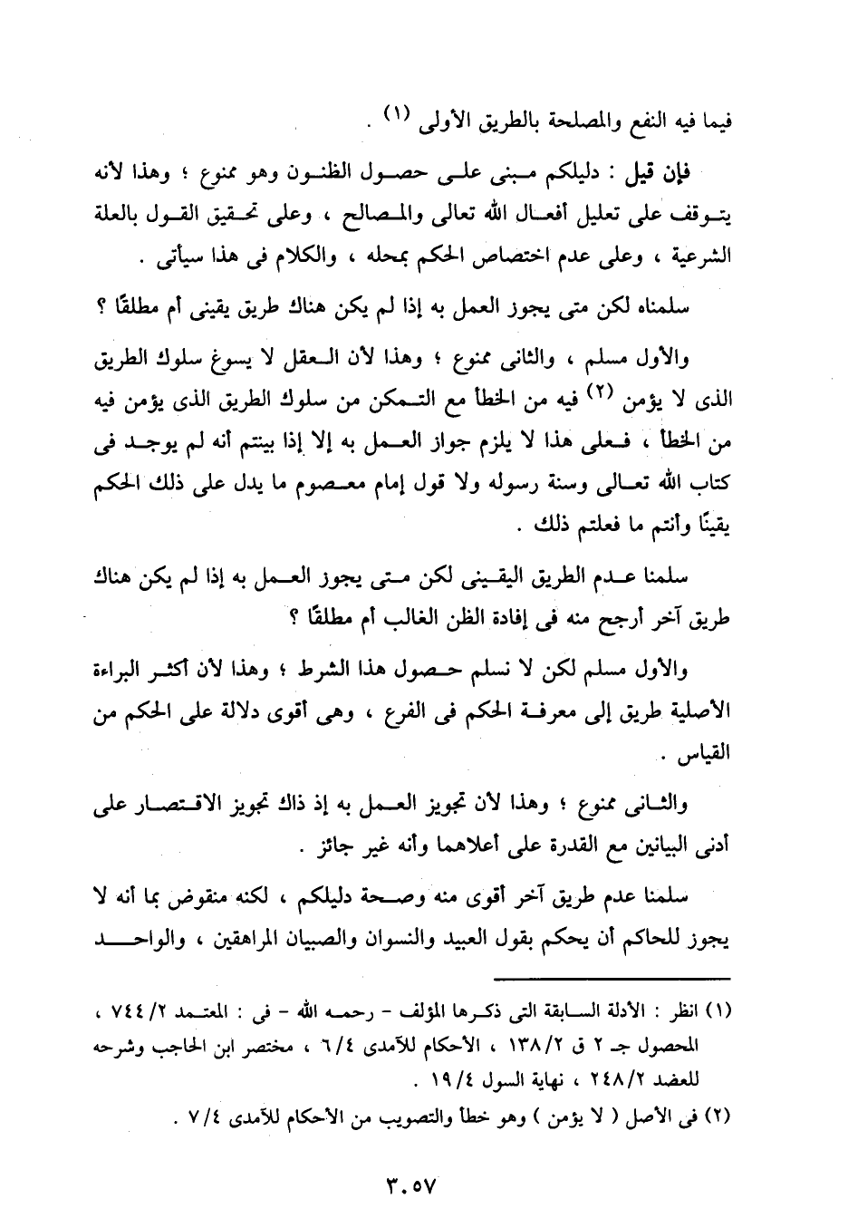 فإن قيل: دليلكم مبني على حصول الظنون وهو ممنوع؛ وهذا لأنه يتوقف على تعليل أفعال الله تعالى والمصالح، وعلى تحقيق القول بالعلة الشرعية، وعلى عدم اختصاص الحكم بمحله، والكلام في هذا سيأتي.