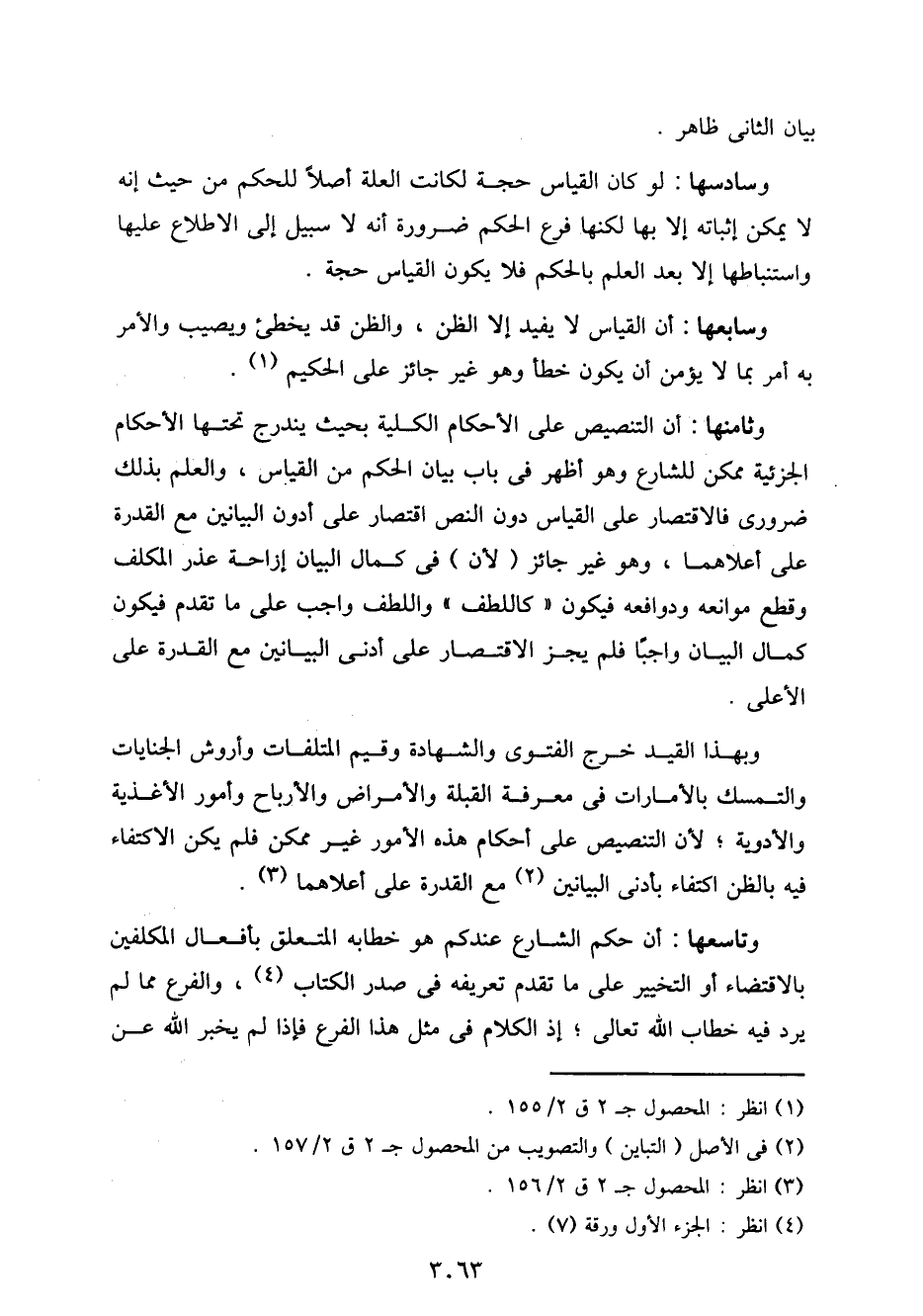 وثامنها: أن التنصيص على الأحكام الكلية بحيث يندرج تحتها الأحكام الجزئية ممكن للشارع وهو أظهر في باب بيان الحكم من القياس، والعلم بذلك ضروري فالاقتصار على القياس دون النص اقتصار على أدون البيانين مع القدرة على أعلاهما، وهو غير جائز (لأن) في كمال البيان إزاحة عذر المكلف وقطع موانعه ودوافعه فيكون "كاللطف" واللطف واجب على ما تقدم فيكون كمال البيان واجبًا فلم يجز الاقتصار على أدنى البيانين مع القدرة على الأعلى.