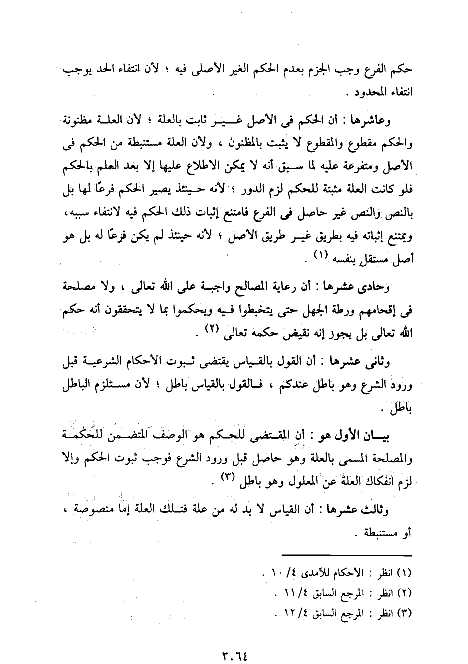 وعاشرها: أن الحكم في الأصل غير ثابت بالعلة؛ لأن العلة مظنونة والحكم مقطوع والمقطوع لا يثبت بالمظنون، ولأن العلة مستنبطة من الحكم في الأصل ومتفرعة عليه لما سبق أنه لا يمكن الاطلاع عليها إلا بعد العلم بالحكم فلو كانت العلة مثبتة للحكم لزم الدور؛ لأنه حينئذ يصير الحكم فرعًا لها بل بالنص والنص غير حاصل في الفرع فامتنع إثبات ذلك الحكم فيه لانتفاء سببه، ويمتنع إثباته فيه بطريق غير طريق الأصل؛ لأنه حينئذ لم يكن فرعًا له بل هو أصل مستقل ينفسه.