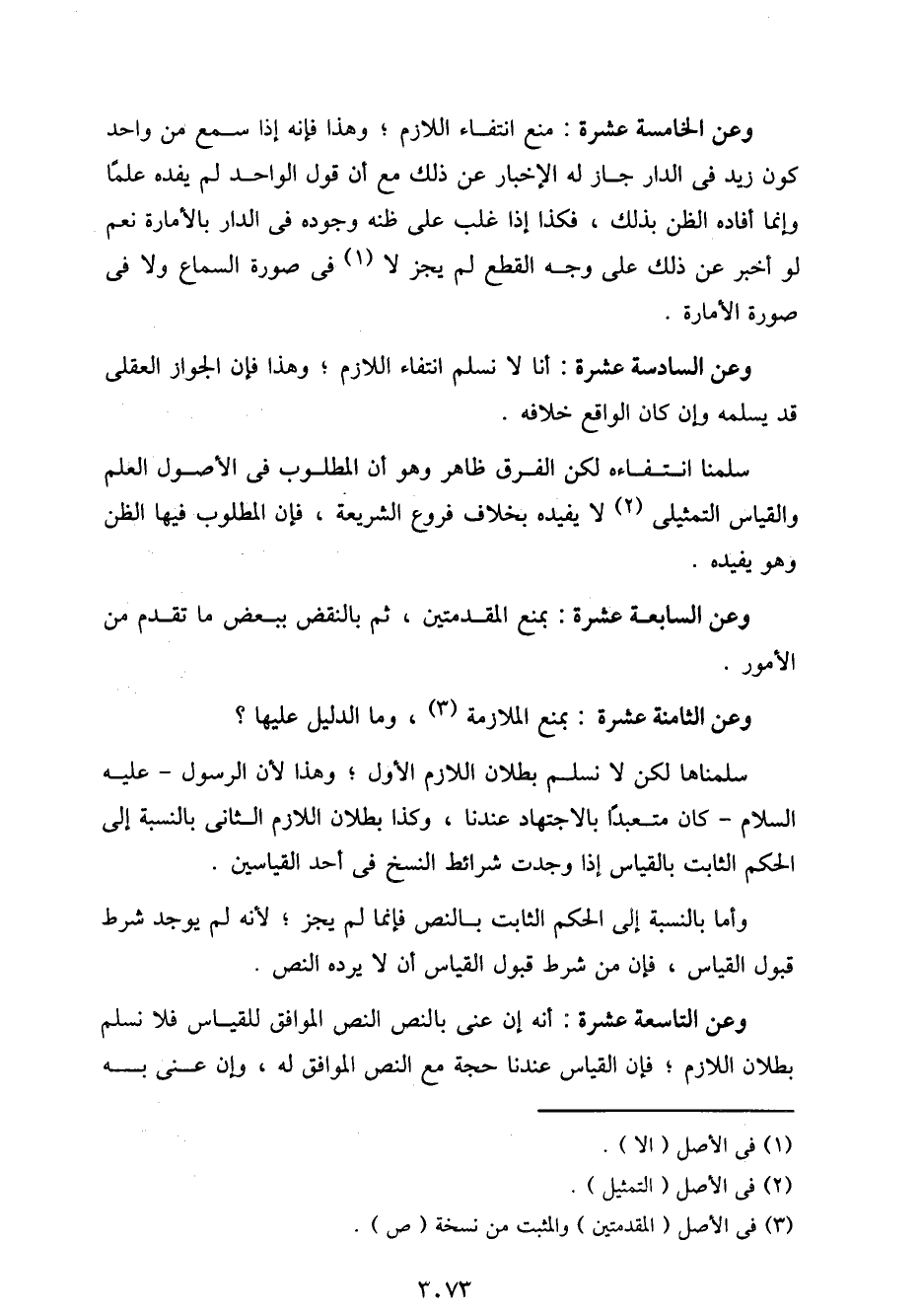 وعن التاسعة عشرة: أنه إن عنى بالنص النص الموافق للقياس فلا نسلم بطلان اللازم؛ فإن القياس عندنا حجة مع النص الموافق له، وإن عنى به