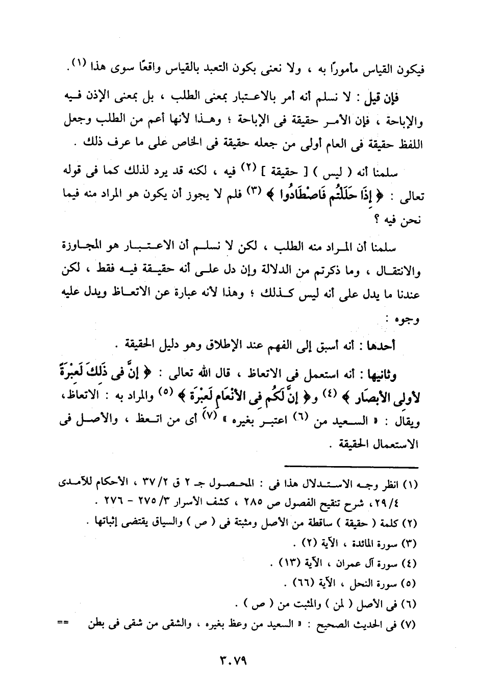 وثانيها: أنه أستعمل في الاتعاظ، قال الله تعالى: {إن في ذلك لعبرة لأولي الأبصار} و {إن لكم في الأنعام لعبرة} والمراد به: الاتعاظ، ويقال: "السعيد من اعتبر بغيره" أي من أتعظ، والأصل في الاستعمال الحقيقة.