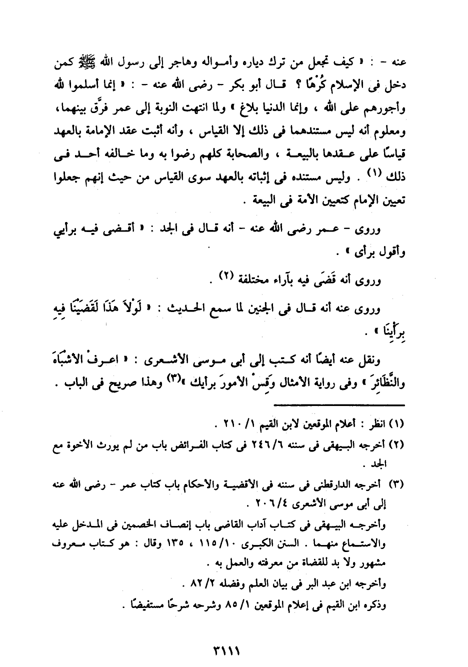 ونقل عنه أيضًا أنه كتب إلى أبي موسى الأشعري: "اعرف الأشياه والنظائر" وفى رواية الأمثال وقس الأمور برأيك" وهذا صريح في الباب.
