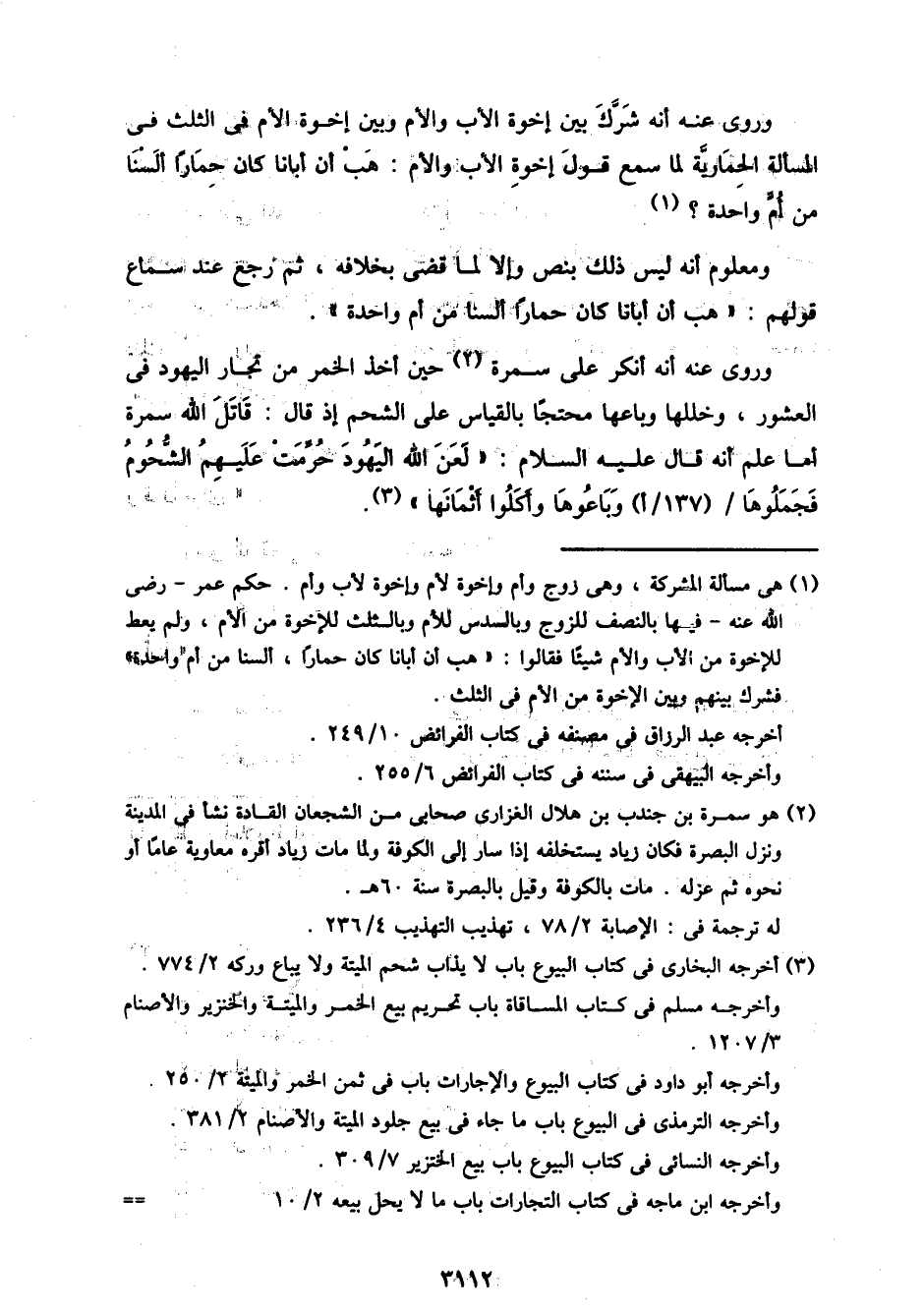 وروي عنه أنه شرك بين إخوة الأب والأم وبين إخوة الأم في الثلث في المسألة الحمارية لما سمع قول إخوة الأب والأم: هب أن أبانا كان حمارًا ألسنا من أم واحدة؟