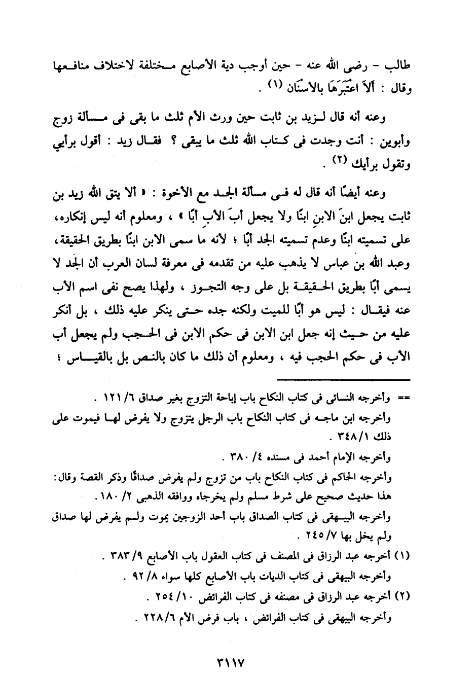 وعنه أيضًا أنه قال له في مسألة الجد مع الأخوة: "ألا يتق الله زيد بن ثابت يجعل ابن الابن ابنًا ولا يجعل أب الأب أبًا"، ومعلوم أنه ليس إنكاره، على تسميته ابنًا وعدم تسميته ابنا وعدم تسميه الجد أبًا؛ لأنه ما سمي الابن ابنًا بطريق الحقيقة، وعبد الله بن عباس لا يذهب عليه من تقدمه في معرفة لسان العرب أن الجد لا يسمى أبا بطريق الحقيقة بل على وجه التجوز، ولهذا يصح نفى اسم الأب عنه فيقال: ليس هو أبًا للميت ولكنه جده حتى ينكر عليه ذلك، بل أنكر عليه من حيث إنه جعل ابن الابن في حكم الابن في الحجب ولم يجعل أب الأب في حكم الحجب فيه، ومعلوم أن ذلك ما كان بالنص بل بالقياس؛