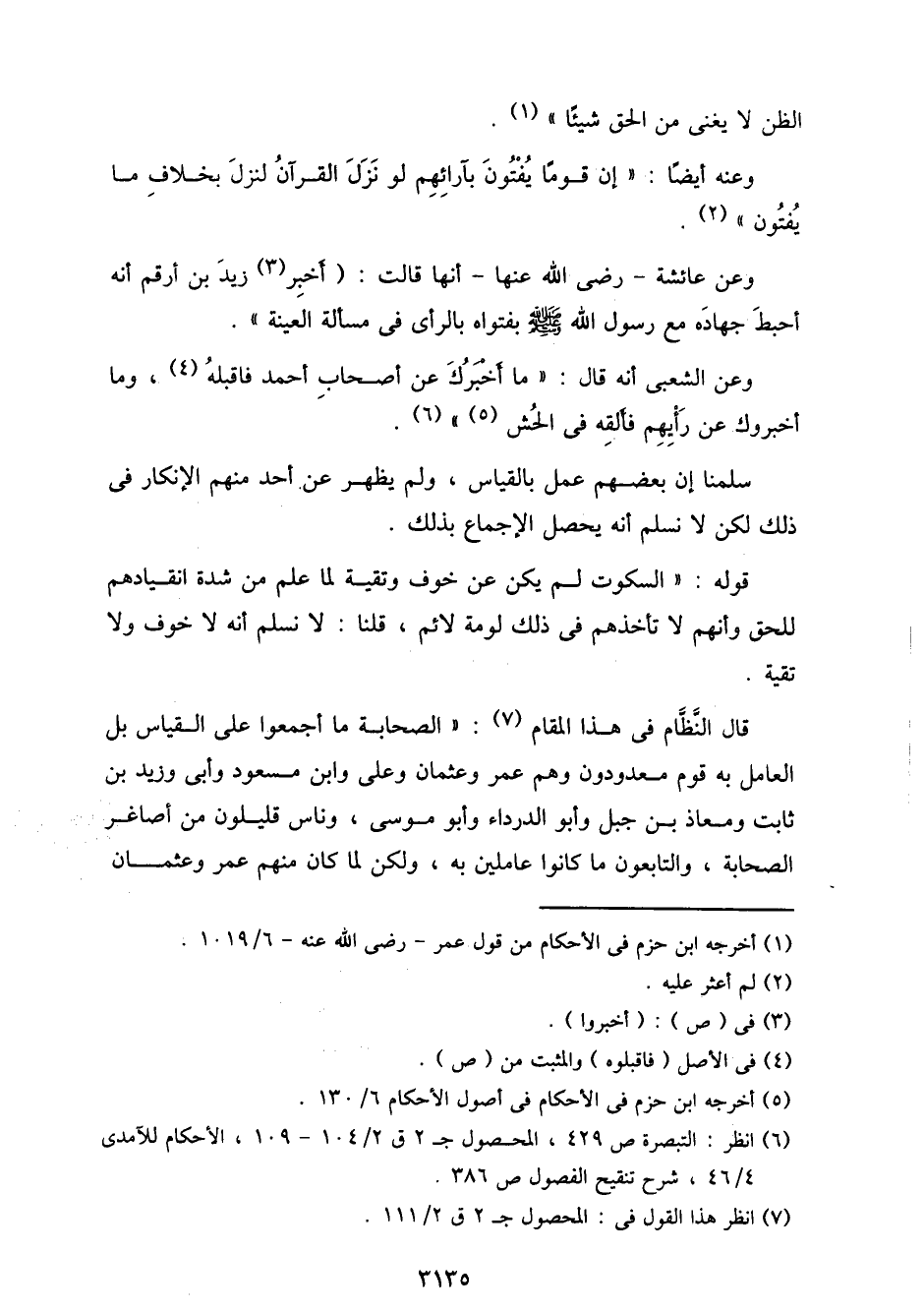 قال النظام في هذا المقام: "الصحابة ما أجمعوا على القياس بل العامل به قوم معدودون وهم عمر وعثمان وعلي وابن مسعود وأبي زيد بن ثابت ومعاذ بن جبل وأبو الدرداء وأبو موسى، وناس قليلون من أصاغر الصحابة، والتابعون ما كانوا عاملين به، ولكن لما كان منهم عمر وعثمان