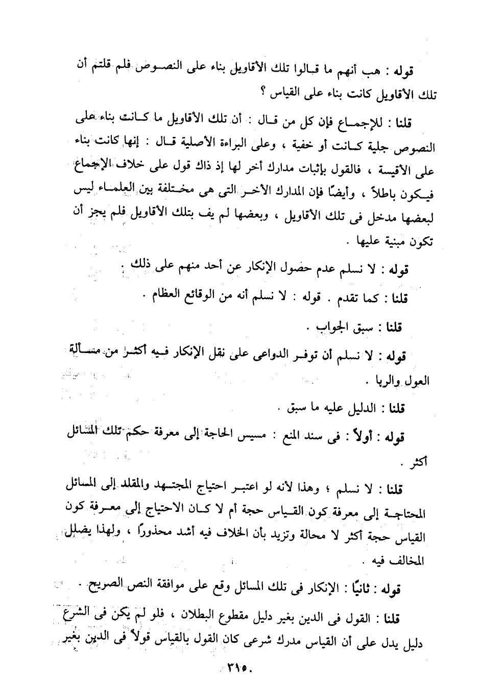 قوله: هب أنهم ما قالوا تلك الأقاويل بناء على النصوص فلم قلتم أن تلك الأقاويل كانت بناء على القياس؟