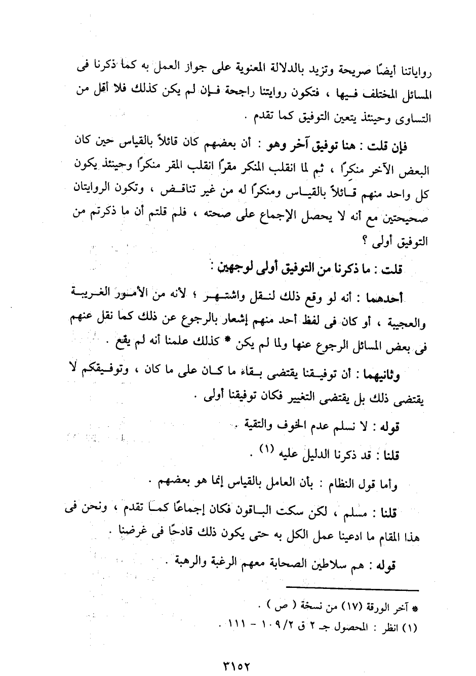 قلت: ما ذكرنا من التوفيق أولى لوجهتين: